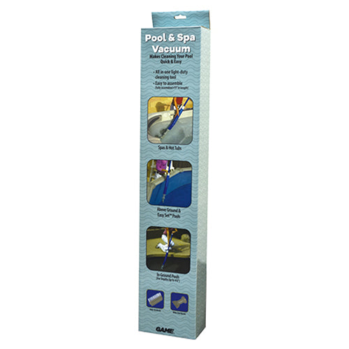 - The GAME handheld spa vacuum allows for quick and easy clean-up of minor debris from your spa through simple pump action.