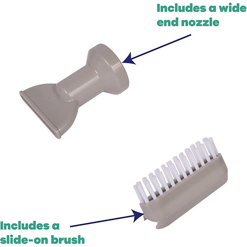 - GAME handheld spa vacuum includes wide-end nozzle and slide-on brush to clean hard to reach corners and stairs of your spa.